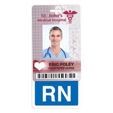 This is our Badge Buddies vertical hanging - Blue (RN).