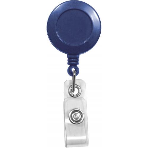 BLUE, 1-1/4" (32MM), PLASTIC CLIP-ON BADGE REEL, W/CLEAR VINYL STRAP, NO STICKER W/SLIDE-TYPE BELT CLIP