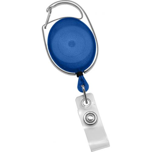 Our Translucent Blue carabiner style reel with chrome outer frame and clear vinyl strap is both fashionable and versatile. Can be customized on both sides.
