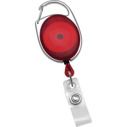 Our carabiner style reel with chrome outer frame and clear vinyl strap is both fashionable and versatile. Can be customized on both sides.