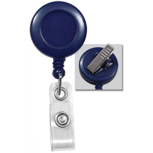 Attaches at any angle and keeps your ID hanging straight. Royal Blue plastic solid reel with swivel clip and clear vinyl strap. Reels can be customized with your company name or logo, for additional fee, call for your specialized quote.