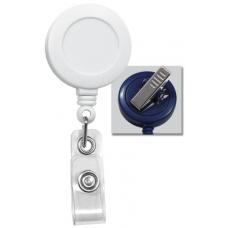 Attaches at any angle and keeps your ID hanging straight. White plastic solid reel with swivel clip and clear vinyl strap. Reels can be customized with your company name or logo, for additional fee, call for your specialized quote.