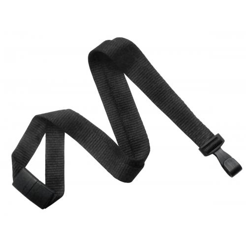 The 5/8" Black bamboo lanyard is available in break away only with a wide plastic hook.