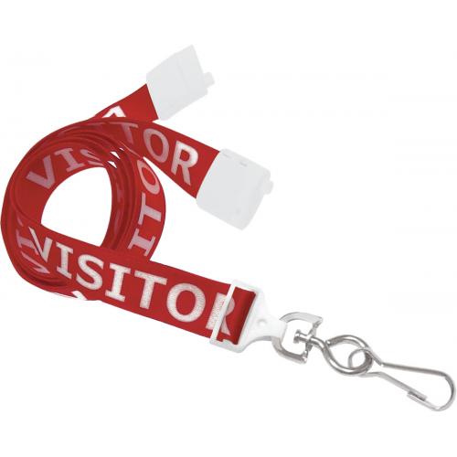 This is our Pre Printed "Visitor" Break Away Lanyard with a swivel hook.