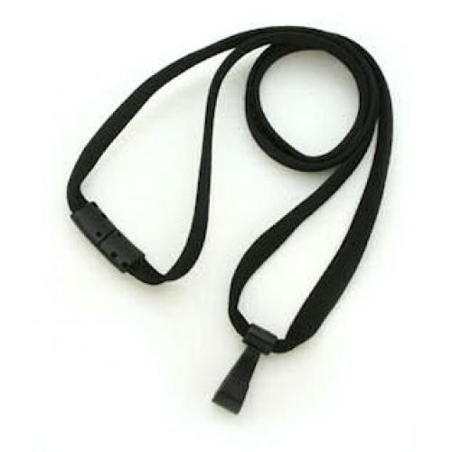 This is a Flat 3/8” Black Break Away Lanyards with No Flip Wide Plastic Hook at the end.