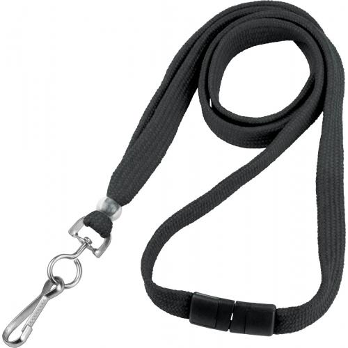 This is a Black Flat 3/8” Break Away Lanyard with Swivel Hook at the end.