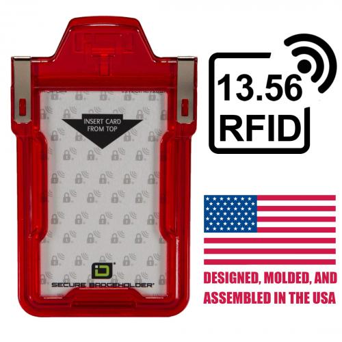 Secure Badge Holder RFID Shielded Badge Holder, Single Card, FIPS 201 Approved Red